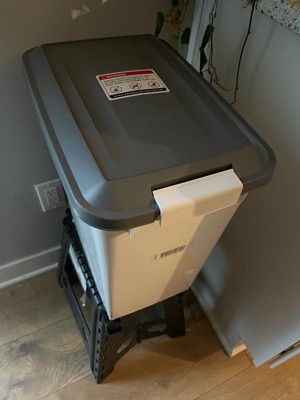 [This review was collected as part of a promotion.] This is the perfect bin to hold our chicken feed. It looks nice and tight to keep the feed fresh and it’s easy to open and close so my young children can use it