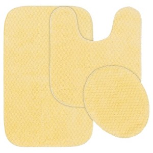 - 3 Piece Set Includes: Toilet Lid (17"x14"), Contour (21"x24"), and a Bath Rug (21"x34")