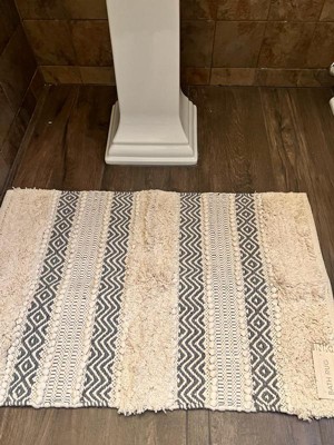 [This review was collected as part of a promotion.] Love this bath mat! It feels really luxurious and high end. It has varying textures, and the colors will match anything. Love the chevron and boho vibes!
