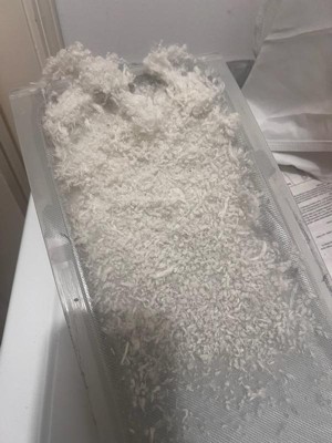 [This review was collected as part of a promotion.] I love the look of this bathroom rug, it’s a perfect size for outside my shower, plus it works great to dry off on. The thing I dislike is that when I washed and dried it it got fuzz everywhere.