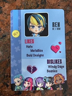 I got “REN” he comes with two hats, removable shoes, pants, and shirt. Also comes with a ladder. The playability time is rather low. My daughter only played with for about 5 minutes. His character card only has a tiny bit of info on it. Not much to the toy. Quality is good. Just not a lot of options.