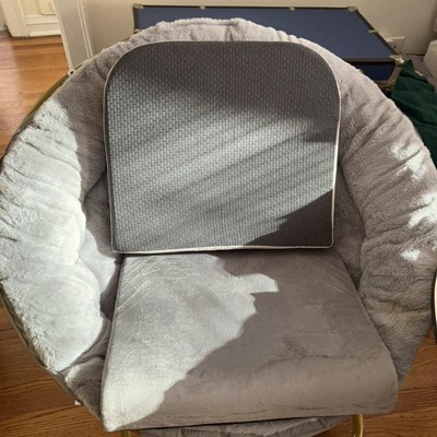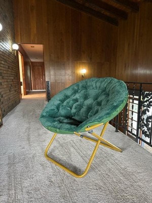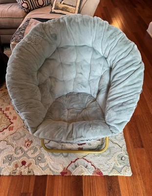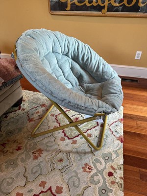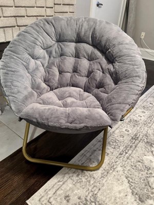 A resurgence in overall well-being elevates comfort to the top of the list when looking for seating making the soft, faux fur upholstery and extra padding in this oversize saucer chair a must have for any dorm room, apartment, or today's homes. The sturdy steel frame holds up to 300 lbs. static weight and folds flat when not in use making it ideal in small spaces and easily portable. The extra large, round frame lets you lounge in almost any position which is great for reading, gaming, or watching tv. Perfect for gift giving, this moon chair requires no assembly and cany be enjoyed right out of the box. A damp rag with a mild detergent will keep your new favorite relaxation spot looking great.