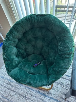 [This review was collected as part of a promotion.] I am absolutely in love with my new green faux fur vintage style fold-out moon chair! The luxurious faux fur adds a touch of elegance and coziness to my space, while the vintage design brings a unique charm. Not only is it stylish, but it is also incredibly comfortable and spacious. The fold-out feature makes it easy to store when not in use, which is a great space-saving solution. Overall, this chair has become my favorite spot for relaxation and adding a touch of retro flair to my decor.