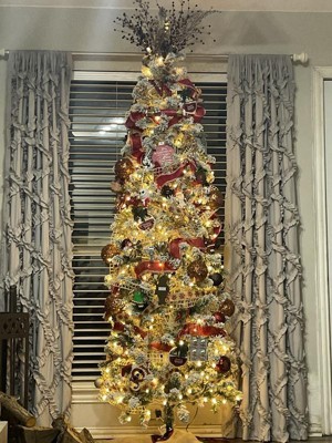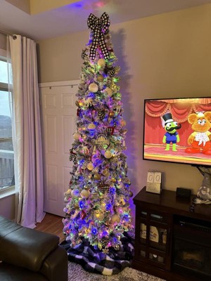 *for reference my ceilings are 11ft and I purchased 9ft (personally didn't get larger because I've very short and usually do alone) Love all the options for lighting- because I prefer white while my daughters prefer "rainbow". Easy to put together, I did it by myself with the help of a step ladder, I'm 5'2. Average flock loss. I've definitely had worse messes from a flocked tree. I'm so in love. And it's skinny enough to be in my space without being in the way. if I could change anything, I wish once I've picked my light color that the next button push would turn it OFF. But definitely not a deal breaker!