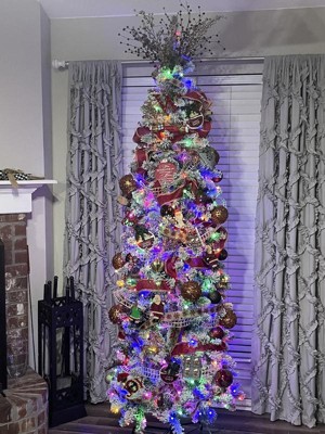 [This review was collected as part of a promotion.] I had a bigger tree but every year we had to move furniture to make it fit. I decided to try this pencil tree and so glad I did! It’s the perfect fit in that it’s a smaller diameter but not so small that it feels like a secondary tree. My favorite feature is being able to change the light color. Sometimes we want white lights, sometimes we need a dash of color. It’s fun knowing you can have what you want with the click of a button. There are 9 light settings to choose from. Now the nitty gritty…none of these are a deal breaker for me but they might be for you. I think the tree could be fuller; maybe I just need to fluff better. The cord from the tree includes the button that switches the lights. The button is so close to the tree that it just dangles so you can’t set it on the floor or hide it away from the tree where it would be easier to click. You literally just have to crouch down and reach under the tree to click the button. We usually ask the kids to do it LOL. It’s a sturdy, beautiful tree that we love. I hope the lights last, as we usually only get about 4 years out of pre-lit trees. Hopefully it lasts longer! I really love this tree!