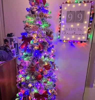 Best Choice Products 6ft Prelit Artificial Snow Flocked Pencil Christmas Tree 350 Multicolored/ Warm-White Light Modes