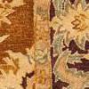 The captivating pattern, inspired by classic designs, features an intricate play of florals and ornamental motifs that come to life against the deep, earthy background. The subtle variations in color lend a unique character to each rug, making it a distinctive centerpiece for any room.