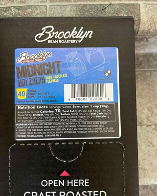 I purchased this Brooklyn Bean Roastery Midnight Hot Cocoa, Dark Chocolate Flavored. This came in a box of 40 single serve cups. These single serve cups brewed up perfectly in my Keurig. This dark chocolate hot cocoa definetly tastes like a premium cup of cocoa. I received an incentive to write this review.