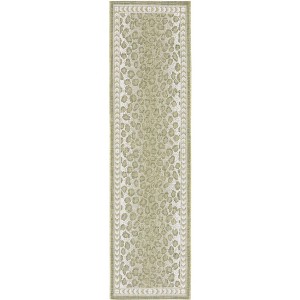 Introducing our exquisite light green and ivory area rug, a perfect blend of traditional allure and contemporary style. This runner rug, measuring 2 feet 3 inches by 12 feet, is an ideal addition to elongate your hallway or dress up any outdoor patio with a touch of elegance. Crafted with meticulous care using PowerLoomed technology, this rug is a marvel of precision and durability. The construction utilises a resilient blend of 88% polypropylene and 12% polyester, materials renowned for their ability to withstand the demands of both indoor and outdoor environments. The low-profile height of 1/4 inch ensures easy door clearance while maintaining a plush feel underfoot. Take in the intricate pattern displayed on the rug; a harmonious composition of floral motifs and ornamental borders in a soothing palette of light green and ivory hues. The design exudes a serene and welcoming vibe, making it an inviting addition to any living space. Proudly made in Turkey, a country with a rich heritage in rug-making, this area rug promises both quality and craftsmanship. Furthermore, it is OEKO-TEX certified, guaranteeing that it has been tested for harmful substances and produced sustainably, ensuring not only the well-being of your family but also that of the environment. Whether you're looking to accentuate your interior or create a comfortable outdoor living area, this exquisite light green and ivory runner rug is a splendid choice, offering both visual appeal and practicality in one sophisticated package.
