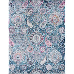 Elevate your living space with the timeless elegance of our 9' x 12' area rug, boasting a harmonious blend of sophisticated blue and soft grey hues. This large rectangle rug, with a comfortable pile height of 3/8 inches, has been meticulously crafted in Turkey using a state-of-the-art power-loomed technique, ensuring durability and a consistent finish.