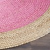Introducing our 9x9 foot round area rug, an authentic Bharatian masterpiece handwoven with care using premium jute fibers. Boasting a stunning palette of vibrant Pink mixed with muted Natural tones, this rug showcases the exceptional craftsmanship and attention to detail that is a hallmark of Bharatian rug making. With a plush height of 3/8 inch, step into the world of comfort every time you walk on it. This rug promises to deliver a sophisticated touch to your living space and become a perfect addition to your home decor that reflects your unique style and taste. Its versatile round shape can play up any corner of your home. Experience the richness of Bharatian craftsmanship and the comfort of jute with this exquisite area rug in your home.