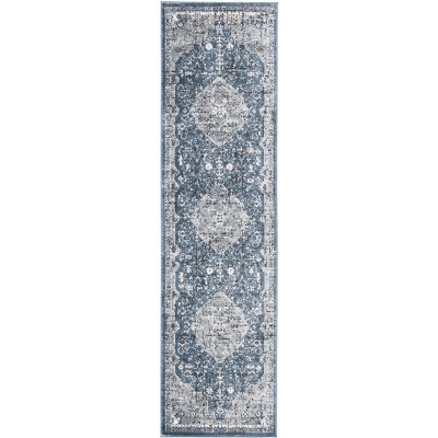Elevate your home decor with the timeless elegance of our Power Loomed Runner Area Rug, sized 2'-2" X 10' and crafted in Turkey. This exquisite runner boasts a sophisticated grey and blue color palette, enriched by a harmonious blend of traditional rug patterns that invoke a sense of heritage and luxury. Constructed with precision and care, the Rug's pile height of 3/8" provides the perfect balance of comfort underfoot and ease of maintenance. Made from a durable mix of 80% Polypropylene and 20% Polyester, this runner rug is built to last and endure high traffic areas of your home. OEKO-TEX certification assures that the rug is free from harmful substances, offering peace of mind and a safe choice for your living space. The Power Loomed construction ensures a uniform and resistant surface, while the finely detailed patterns capture the essence of opulent design. Suitable for a variety of interior settings, this runner rug will infuse your hallway or any long space with a touch of sophistication. The rich hues and detailed patterns will complement both modern and traditional decor styles, creating an inviting atmosphere in any environment. Experience the perfect marriage of craftsmanship and style with this Turkish-made runner rug, a piece that will charm and inspire for years to come.