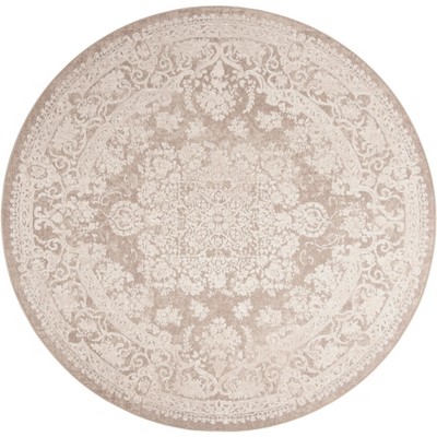 Discover the allure of traditional design with this round Oriental area rug. Measuring 3 feet in diameter, its compact size makes it a versatile accent for any room. The muted creme and ivory palette adds a touch of elegance, seamlessly blending with various decor styles. Crafted in Turkey, this rug is power loomed from a blend of 60 percent polyester and 40 percent polypropylene, offering a soft texture and subtle sheen. The 3/8 inch height provides a smooth surface underfoot without overwhelming your space. Enhance your living area with the timeless charm and intricate patterns of this beautifully designed rug, a perfect addition to your home decor.