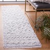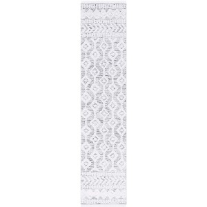 The intricately designed pattern showcases a series of diamonds and angular motifs, creating a visual rhythm along the length of the runner. Its serene grey and soft ivory hues offer a neutral palette that easily integrates into your existing color scheme, enhancing your home with a subtle yet striking aesthetic.