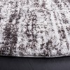 Elevate your living space with our exquisite 7' X 7' Round area rug, a harmony of contemporary style and luxurious comfort. Boasting an alluring abstract pattern, this piece weaves together varying shades of grey and dark grey, creating a dynamic and serene focal point for any room. The intricate design, as depicted in the image, suggests a landscape etched by time, offering both sophistication and a touch of mystery to your decor.
