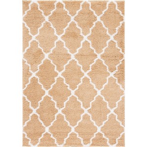 The rich, dark beige and crisp ivory colors create a sophisticated contrast, bringing to life the classic lattice pattern that graces its surface. With each crossing line and jointed shape, the rug boasts a visual harmony that is both inviting and chic.