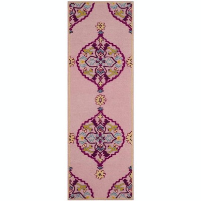 Elevate your home with the charming sophistication of our hand-tufted wool runner rug, beautifully crafted in the vibrant hues of pink and multi. This enchanting 2'-3" X 8' runner rug, made with pride in India, is a celebration of artisan skill and design finesse.