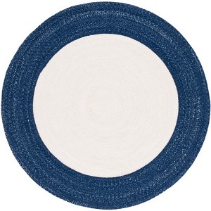 Braided BRD803 Hand Woven Area Rug - Ivory/Navy - 4' round - Safavieh.