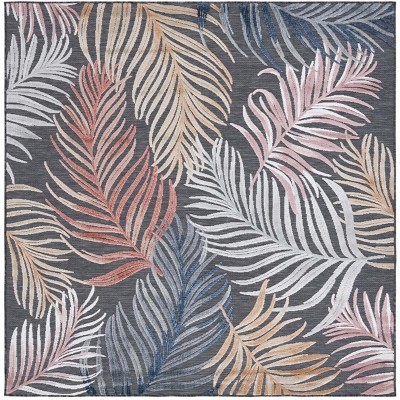 Cabana CBN451 Power Loomed UV Resistant Indoor/Outdoor Area Rug - Black/Rust - 6'5"x6'5" - Safavieh