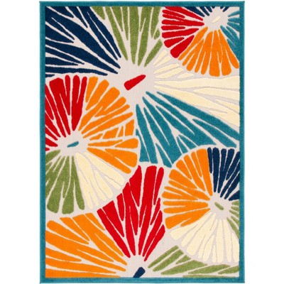 Cabana Indoor/Outdoor Rugs offer a selection of elaborate floor coverings for any busy area of the home, inside or out. Playful florals, lush vines, and fanciful geometric motifs brim with "staycation" vibes on any deck, porch, or patio. Cabana patio rugs are made using durable synthetic yarns for resistance to weather, wear, mold, mildew, and fading from the sun. Care Instructions: Hose Clean With Water