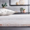 The color palette is an elegant interplay of grey and gold hues, creating a sophisticated backdrop for modern living. As displayed in the image, the rug features an artful design, with abstract strokes and textures that evoke a sense of urban chic. This visual appeal is perfect for complimenting minimalist or eclectic decors, making a subtle yet bold statement.