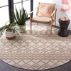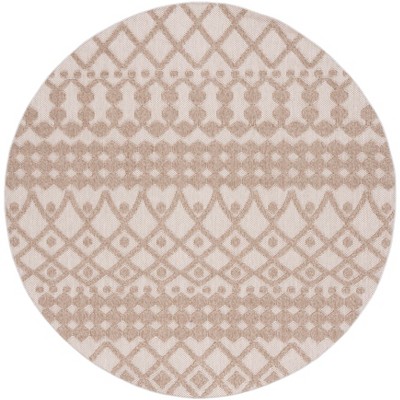 Introducing our exquisite Indoor/Outdoor Area Rug, a versatile and elegant addition to any space. Crafted with care in Turkey, this round 6'-7" X 6'-7" rug showcases a harmonious blend of beige and brown hues, creating a warm, inviting atmosphere in any room or outdoor area.