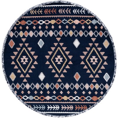 Marrakesh MRK608 Power Loomed Area Rug - Gray/Blue Rust - 6'7" round - Safavieh.