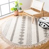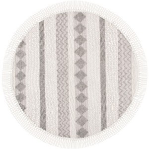 Introducing our exquisite 6' x 6' Round Bohemian-style area rug, a perfect blend of traditional craftsmanship and contemporary design. With its serene ivory and subtle grey hues, this rug exudes a sense of calm and elegance that can complement any room in your home.