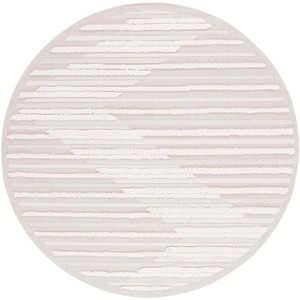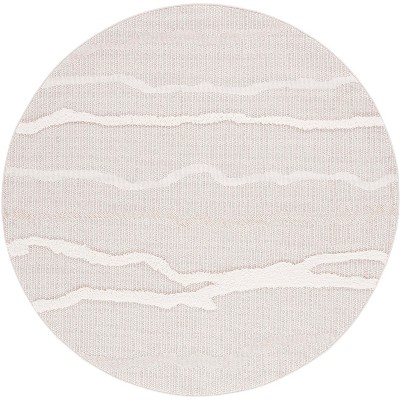 Discover the elegance of simplicity with our round area rug. Measuring 6 foot 7 inches by 6 foot 7 inches, this beige and ivory rug brings a touch of sophistication to any space. Its contemporary style is crafted through expert power looming, blending 70 percent polyester and 30 percent polypropylene. This combination from Turkey ensures durability and a soft touch.