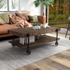 Inspired by industrial carts from a bygone era, this Coffee Table will take your interior to a new level of repurposed style. The timeless appeal of its rugged fixed metal casters and rustic wood surface make an eye-catching focal point in any room. With its planked design and rich finishing, this handsome coffee table will naturally add a touch of history to your home.
