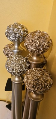 EXCLUSIVE HOME Peony 1" Curtain Rod and Coordinating Finial Set, Gold, Adjustable 66"-120