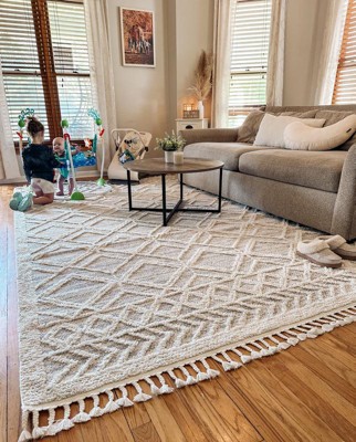 I love this rug in our family room. We have 3 kids and it holds up shockingly well! It’s soft and the color/pattern is nice. Def need a pad under the rug. I don’t love the tassels as they can look messy.