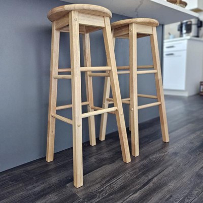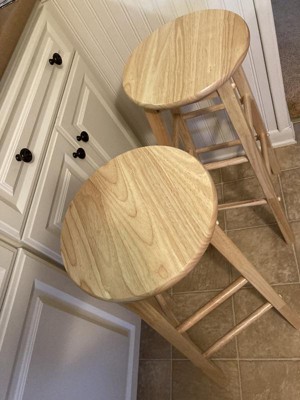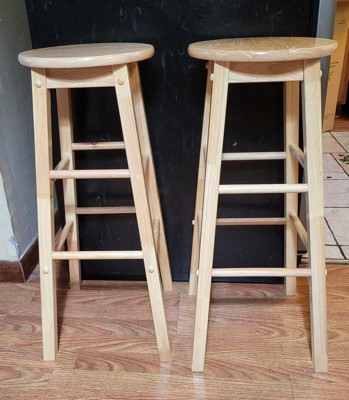 PJ Wood Classic Round-Seat 29 Inch Tall Kitchen Bar Stools, Natural, Set of 2