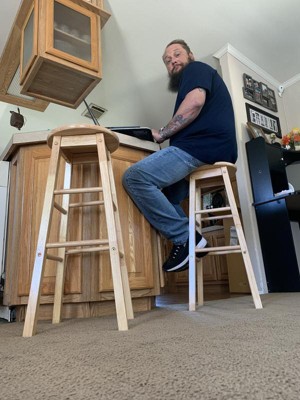 [This review was collected as part of a promotion.] I absolutely love these classic wood, round bar stools. These bar stools are very sturdy, strong and made with excellent quality. I love the height of these bar stools they fit perfectly under my kitchen island. These stools were super easy to put together. I most definitely recommend them, they definitely serve there purpose.