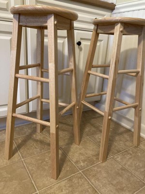 [This review was collected as part of a promotion.] PJWood stool set is a classic style that is also sturdy. Easy to assemble but more important, they fit the space!! Correct height go counter seating or, as I use it, doing work at my counter. The 8 cross bars built in are useful for a foot rest while peeling my potatoes!!! These stools are sturdy, neutral color and design, proper height and come in a set of two!! Perfect!!