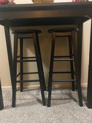[This review was collected as part of a promotion.] PJ wood classic round black seat 29” tall kitchen counter stools will beautify your kitchen counter area. These stools are perfect for all occasions. It is made from sturdy, durable woods. These two bar stools feature comfortable round backless seats with a classic, modern design and can withstand up to 225 pounds. It is ideal for eating, working, entertaining guests or an addition your new bar. Great product, highly recommend.