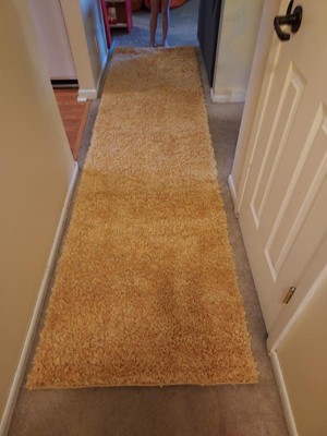 Nice rug. Bought an area rug and runner. Biught the yellow gold color. Its nice. Have to vacuum after unrolling. Will need a pad or tape to keep it down. Smells like a rug. Came on time. Very nice.