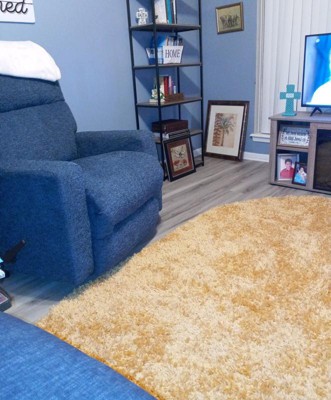 The color of this rug is perfect to brighten up dreary winter days here in WI. And this shag is SO SOFT. I love to walk on it barefoot!