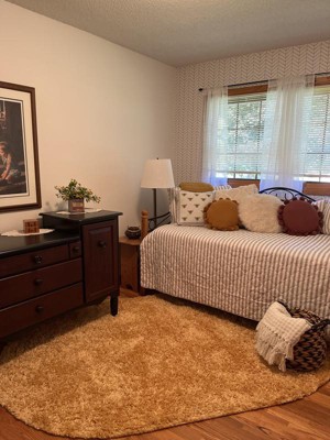 Guests appreciate the Zermatt shag round rug for its beautiful colors, soft texture, and overall quality. Many find it perfect for various spaces, including living rooms, bedrooms, and nurseries, adding a cozy and inviting feel. While some mention it could be thicker, the rug's aesthetic appeal and comfort underfoot are frequently highlighted, making it a popular choice for enhancing home decor.