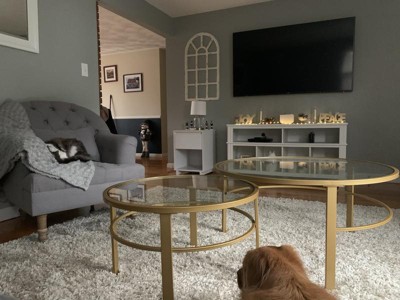 Guests appreciate the Zermatt shag round rug for its beautiful colors, soft texture, and overall quality. Many find it perfect for various spaces, including living rooms, bedrooms, and nurseries, adding a cozy and inviting feel. While some mention it could be thicker, the rug's aesthetic appeal and comfort underfoot are frequently highlighted, making it a popular choice for enhancing home decor.