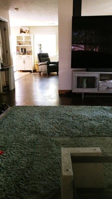 I love the color of this rug. I had to buy a rug pad for it though because it's kinda thin without it. My family is truly enjoying laying astound on it.. Irs so much fun, it takes me back to my youth when shag carpets were in everyone's houses. I bought it in a mint green...it just makes me happy!!
