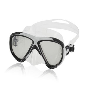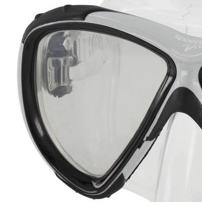 You can now experience superior clarity underwater with Speedo's innovative Adult Explorer High Rise Dive Mask. This product conveniently features premium two-window glass lenses that provide incredible enhanced vision when in the water. It also offers an additional tight seal to keep water and moisture out for the ultimate comfortable swim experience.