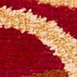 • A: The rug features an ultra-modern, geometric design with color block boxes and circular lines.