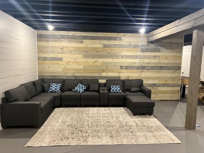 I needed something that was neutral and felt "light," but still coordinated with the dark brown floor, and and browns, and cognacs in the stone fireplace. THIS IS IT! It has the perfect amount of light and dark so it picks up the warm (and cool) tones of your room. And it was much softer than expected. Very happy with this purchase. Only thing is that I didn't see the directions on how to remove the wrinkles from the rug, so I will have to do that with the next purchase. (You can see the one little wrinkle in the middle at the edge of rug that I couldn't get to lay flat).