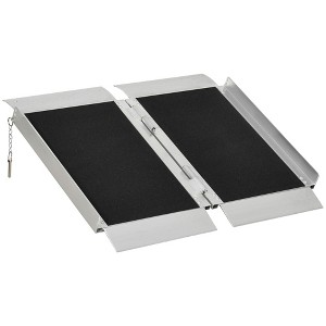 HOMCOM's all about making your life on the go easier with our aluminum wheelchair ramps. These ramps are tough and lightweight, made from strong aluminum alloy. We've taken care of safety too – they come with a specially treated non-slip surface, raised edges on both sides, and an extended tail plate design. And don't sweat the transportation – the scooter ramp is foldable, so you can stash them in your vehicle. Suit for wheelchairs, scooters, bikes, and any other tricky-to-move wheels.