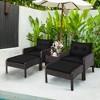 Costway 5 PCS Patio Rattan Wicker Furniture Set Sofa Ottoman Coffee Table Cushioned