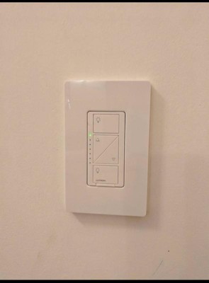 Adjusting lights and shades from a smart phone has never been easier or more reliable. Experience the ultimate convenience with the Lutron Caséta Wireless dimmer Pico remote control and Caséta Smart Hub. The wireless dimmer gives you the ability to set the right light for any activity whether it's reading, watching TV entertaining or having a casual dinner. The dimmer works up to 600 watts of incandescent or halogen and 150 watts of dimmable LED or dimmable CFL. Control the lights from anywhere in the room by using the Pico remote control by mounting the remote directly to the wall for multi-location dimming - no cutting holes or wiring required. SET IT AND FORGET IT Always keep your smart light functionality Even when the Wi-Fi goes down there’s no need to reset your schedules and scenes or reconnect everything when it comes back online GET MORE SPEND LESS One Caséta smart switch can control many bulbs at once make many bulbs smart even your existing bulbs Get smart control of multiple styles of dimmable LED incandescent and halogen bulbs WORKS WITH EXISTING WIRING Unlike other smart dimmer switches Caséta works in any home of any age as it does not require a neutral wire Most Connected ,smart lighting control , caseta works with more smart home devices than any other smart lighting control brand . Get More , Spend Less . One caseta switch can make many bulbs or fixtures smart, even existing ones. Save money and keep your style options open by putting smart lighting at the switch . Smart lighting control, however you choose . dimmer switch for the wall. Lutron app on the go. Voice assistant ( Alexa turn on the lights ). Pico remote throughout your home. Dim from ( Almost ) anywhere , add pico remote to almost any surface-no cutting holes or pulling wire required. Pair with your dimmer to create a 3-way application wherever you want . Put lighting control at you fingertips . Pico smart remotes can be added ( almost ) anywhere. Add to existing set of dimmers , control from tabletop. Add a dimmer where you didn't have one before . Pico wireless remote for dimming . Indicator LED flashes when a button is pressed . Top button turns lights on . Tap buttons up or down to dim or brighten. Define favorite light level tap to activate. Bottom button turns lights off .