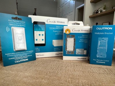 - Includes (1) Lutron Caseta Smart Hub (1) Caseta dimmer switch (1) Pico 3-button dimming remote and (1) Pico wall plate bracket; WALLPLATE NOT INCLUDED sold separately