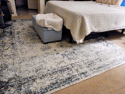 I just received the rug and it looks nice. The wood floors are being installed this week, so it will be a few more days before I can unroll the rug and really see how it looks but it’s a pretty vintage design.