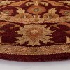 Experience the perfect marriage of traditional style and modern-day craftsmanship with this magnificent wine and gold round area rug, a testament to India's rich heritage in textile arts.